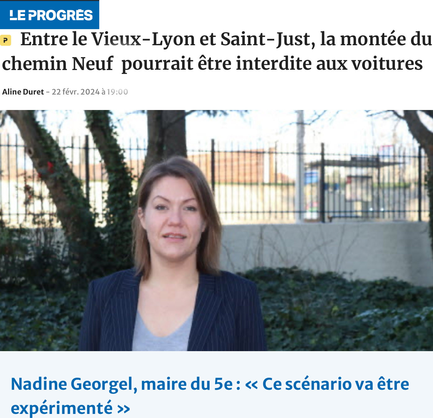 Mme Nadine Georgel, Maire du 5e arrondissement, déclare au Progrès le 22 février 2024 :